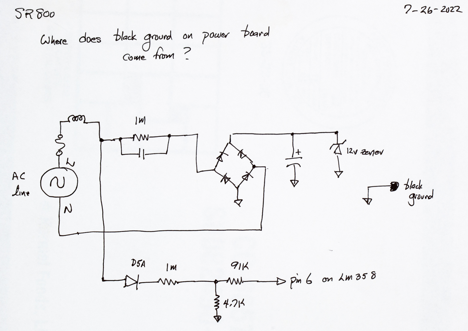 Next here is the 12 volt "raw" power supply circuit (on the power board) along with the signal delivered to the zero crossing detection circuit (the LM368).