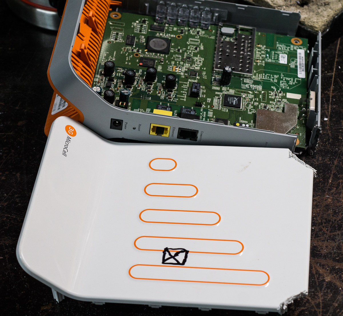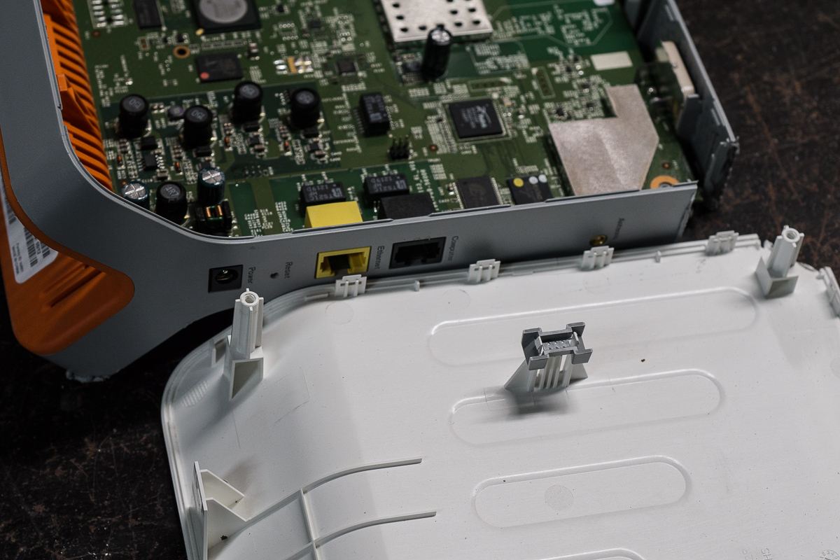If I had it to do again, I would cut the sides in the places I marked (for your convenience, dear reader) to avoid pulling the anti-tamper jumpers.
