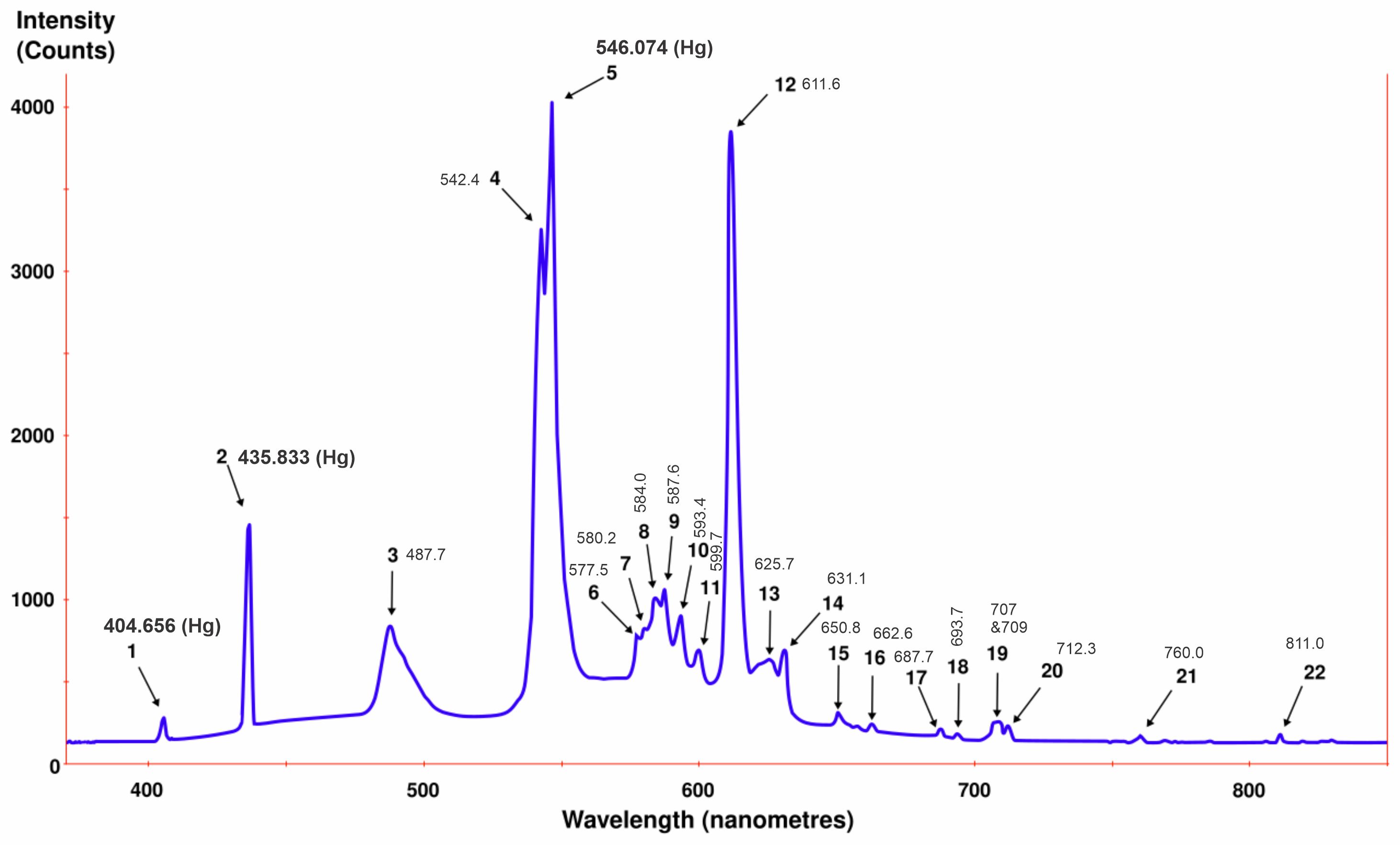of the lamp. The three mercury peaks (1,2, and 5) and of course reliable.