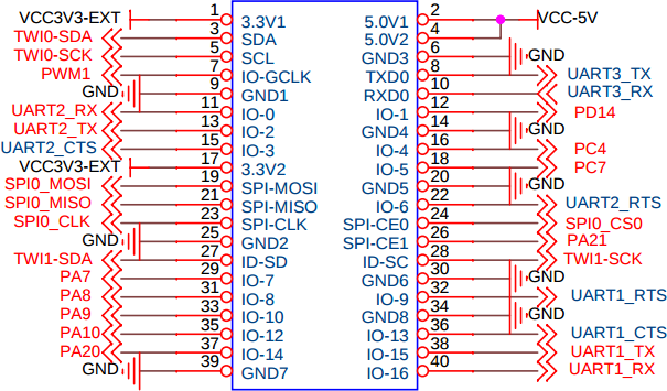 The following diagram is for the IO connector on a "Orange Pi 2 (mini)" taken from the above article.