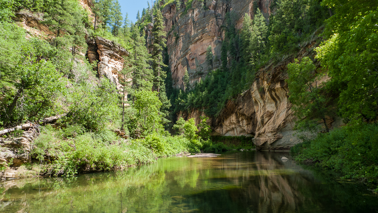 West Clear Creek is of interest because it has water year 'round (as near as I can tell) and a dramatic canyon cut in Coconino sandstone. The upper reaches of West Clear Creek has some technical canyoneering in various side canyons. Heading up West Clear Creek will involve wading and probably also swimming. Dry bags are in order if you are backpacking.