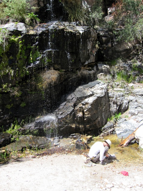 At the time we did this hike (after a very rainy winter), Bridalviel falls was running nicely and we filled our water bottles there. There was very little water in Esperero Canyon, and I would be skeptical of this spring in mid summer or in a drought year. In 2010, when we did this hike, there were wildflowers everywhere, especially at lower elevations (the first mile of trail past the Sabino road were spectacular!).