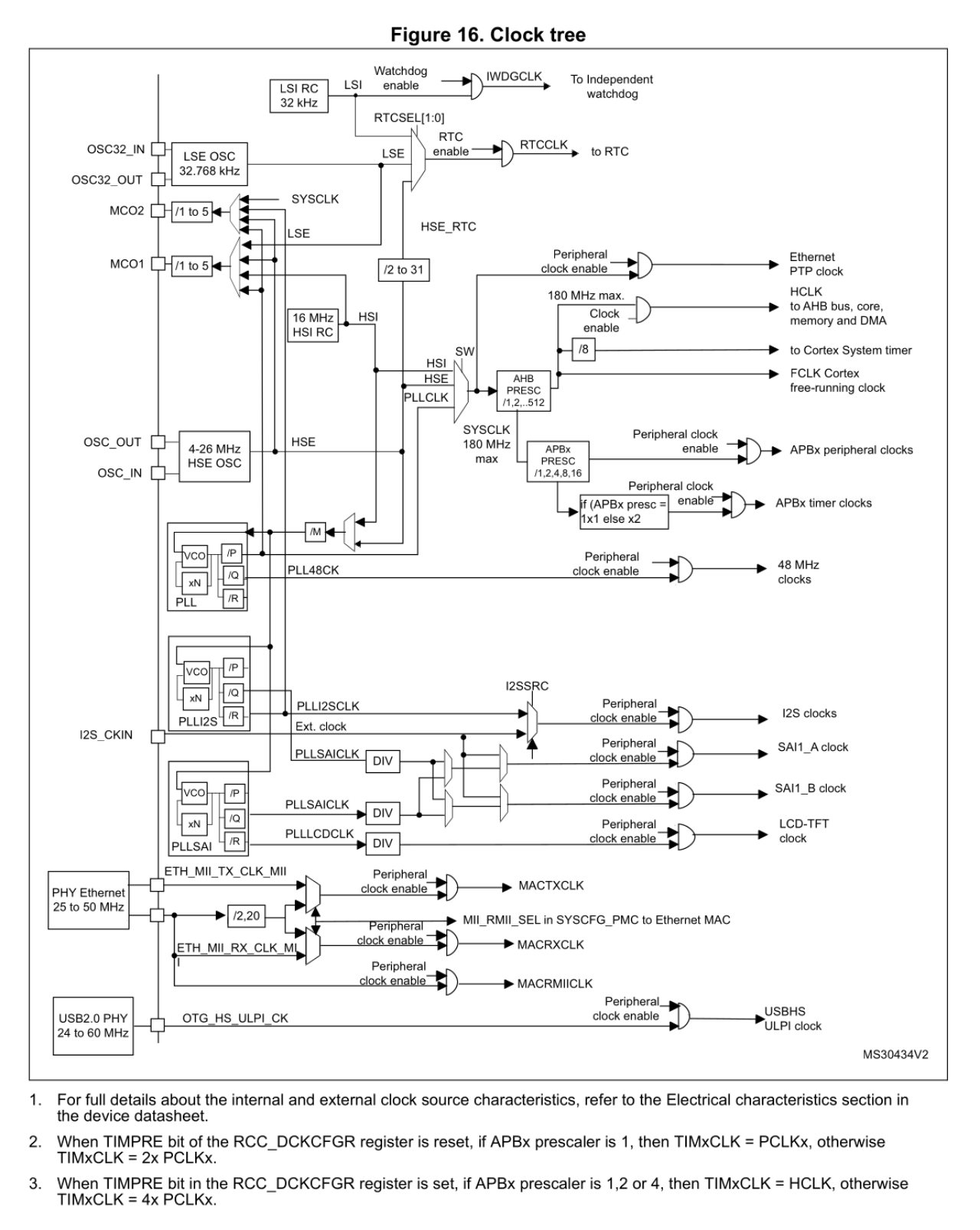 Amazingly, these are configured by the RCC "conf" register at offset 8. Each has a 3 bit field to configure a prescaler (1 to 5 as per the block diagram above). Each also has 2 bit field to select one of four sources.