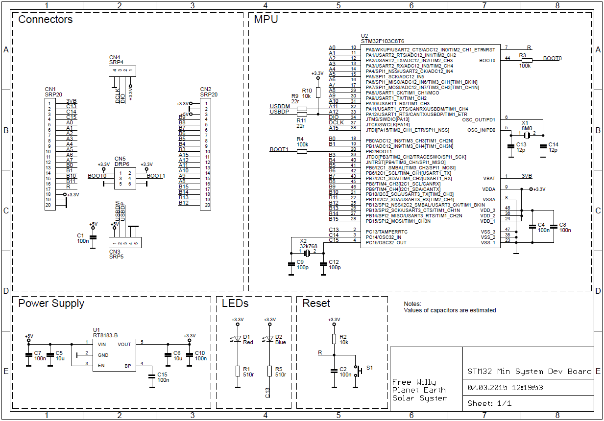 Schematic: the STM32F103C8T6 ARM STM32 Minimum System Development Board