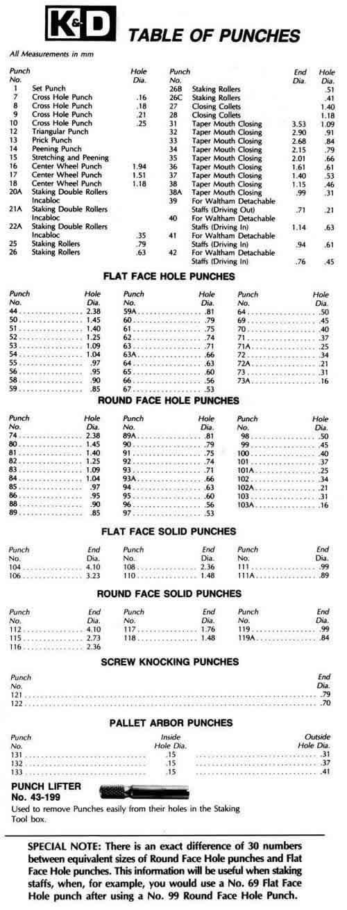 K and D Staking punch table
